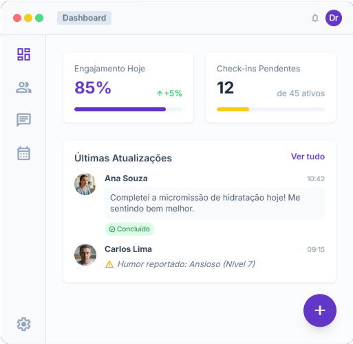O módulo que transforma atendimento em cuidado contínuo com coleta proativa de dados, micromissões e dashboard do paciente.